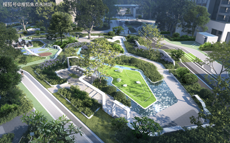 健康生活方面,环绕整个园林设计了健康环形跑道,各功能分区清晰齐全,有序串联,给业主营造丰富健康生活空间;
