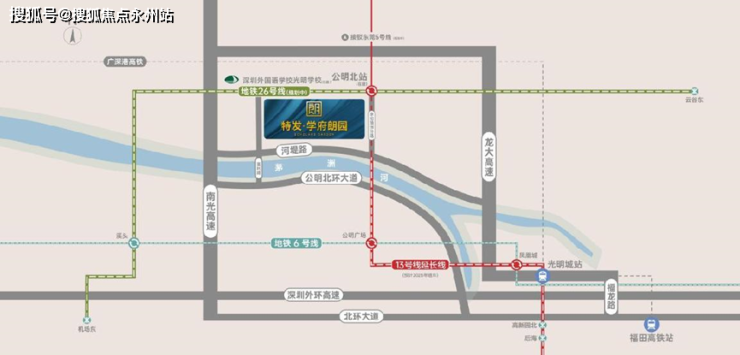 项目直线距离13号线高新技术人才专线首站公明北站(在建)约200米,未来搭乘该线可直达南山科技园、后海;南光、龙大双高速环绕,自驾速抵南山、福田、龙华核心。