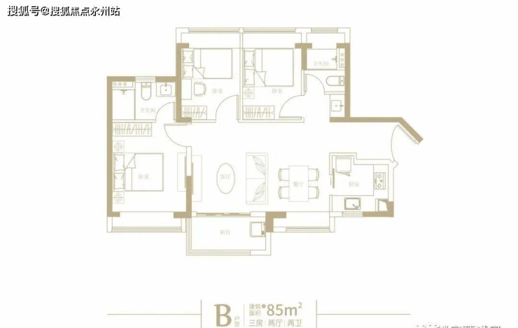 而产品设计上,有两个户型:约71㎡的两房两厅一卫、85㎡的三房两厅两卫。