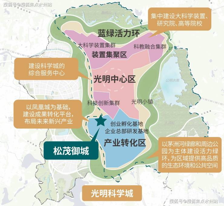 松茂御城所在的光明区塘尾片区,正处于深圳「科学 + 城市」双轮驱动的核心发展轴上。作为大湾区综合性国家科学中心核心承载区,光明科学城已形成「基础研究 - 中试转化 - 产业应用」全链条创新生态。