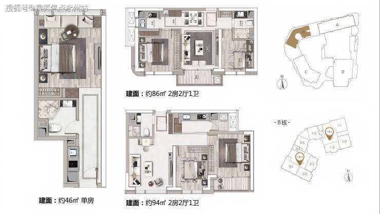 岁宝壹品不同于一般公寓整层满铺户型,采用多单元式的铺展,于保障私密之外,拓宽生活边界。项目充分考虑南北对流、通风采光、景观面等因素的户型设计,根据各区不同场景打造多元纯居住户型,满足不同业主的不同生活需求,保障最舒适的品质生活。
