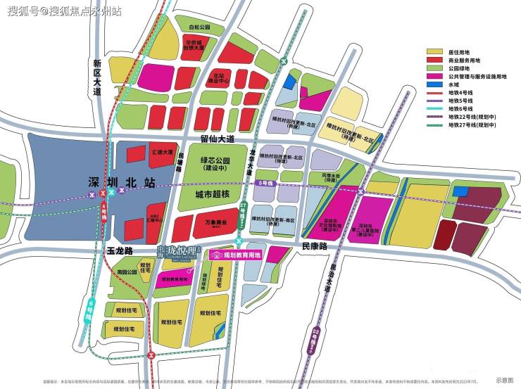 项目位于龙华区民塘路和玉龙路交汇处,距深圳北站仅约300米;北侧与华润万象城相邻,南边是九年一贯制学校,西边为南园公园。周边的时尚消费、人文教育、生态绿色空间等,为项目提供便利的配套服务。