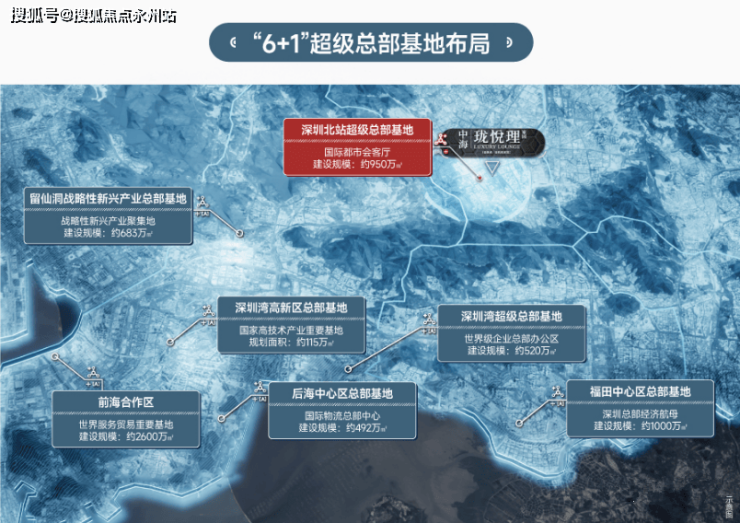 北站超级总部基地 千亿CBD腾飞在即:深圳北站超级总部基地是深圳6+1超级总部基地之一,规模仅次于前海合作区。基地投资约2000亿,打造550万m²商务集群,吸引30家企业总部入驻。设计理念为双芯交汇、枢纽门户,融汇超级枢纽芯、超级绿芯等规划。中海珑悦理位于超核之上,一揽城市中轴CBD景观资源,毛坯限价7.245万/m²。