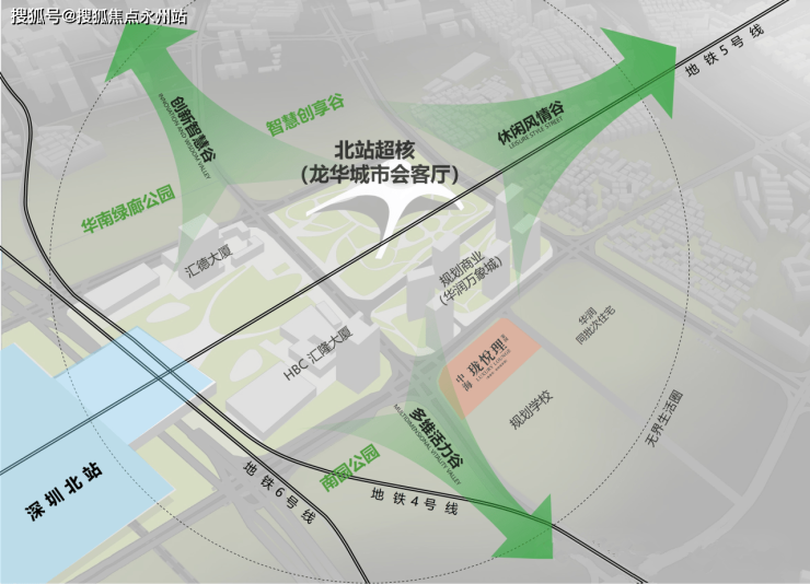 深圳北站:同步世界站城发展,广深、深港高铁及深惠城轨(建设中),1站直达香港西九龙,与广州、香港形成湾区高品质生活圈,产业人才集聚高地,“下一站,深圳”成为名片
