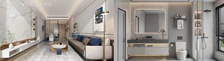 公区品质:楼栋大堂采用潘多拉奢石纹理岩板背景墙,内嵌隐藏式光源,搭配采光幕墙,营造高端会客场景;电梯轿厢采用镜面不锈钢材质,提升空间通透感。