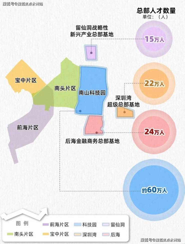 前海深港合作区(西南向约4km):定位国家战略性门户枢纽,未来将打造成世界级城市新中心,规划就业人口约65万人,居住人口15万人。