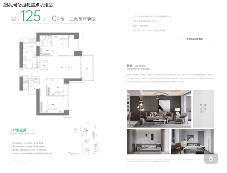 建筑面积约125㎡A户型:瞰景三房,飘窗、阳台拉开居住视野,主卧私享功能产备