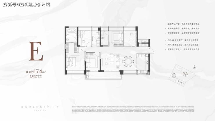 174㎡5房3卫(西区):横厅户型,双套房设计,整体尺度都很不错,使用率也很高,赠送后接近90%。