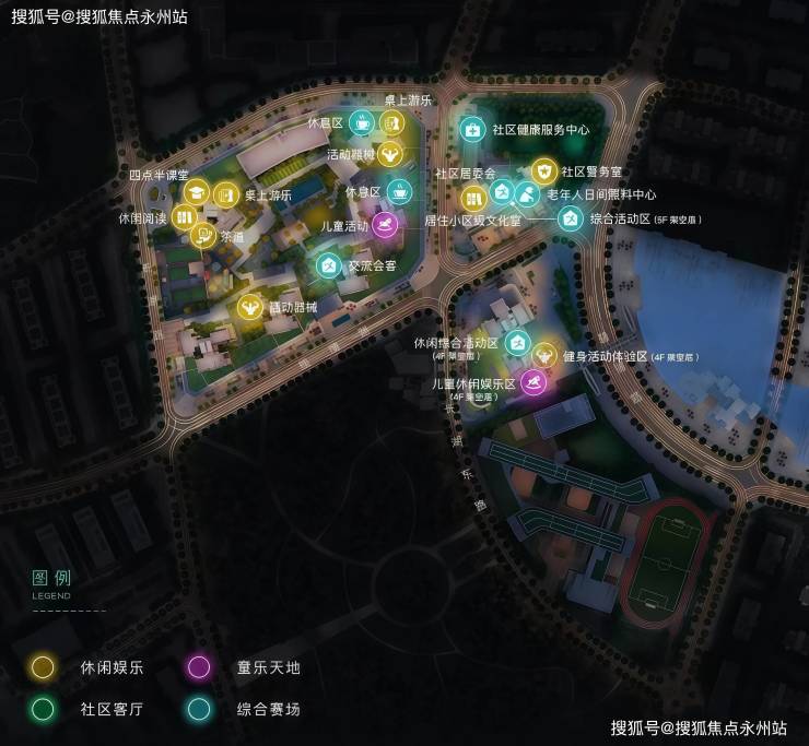 架空层泛会所:打造了全龄活力的泛会所空间,精研全龄段社交、运动需求,打造集休闲交流、活动健身、儿童游乐和老人颐养等专属空间,为居者提供室内的活动空间,同时作为室外活动区域的延伸和补充。