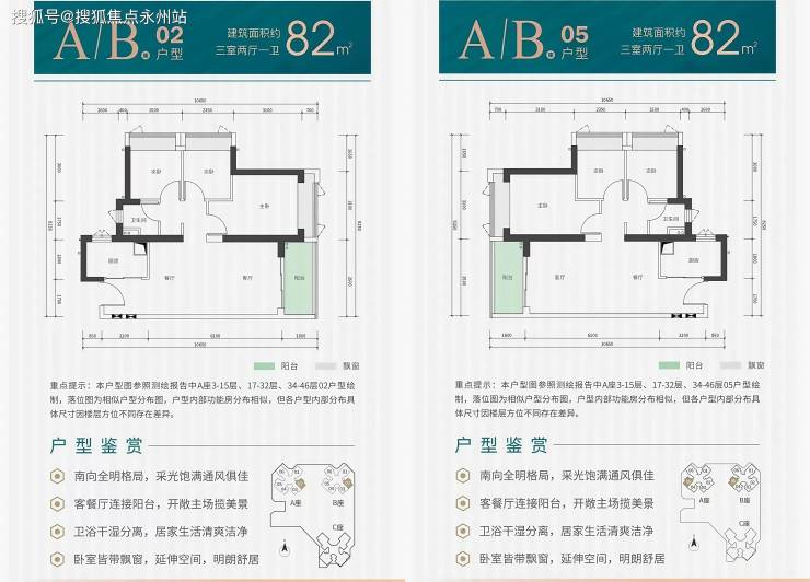 户型设计合理:全南向采光,82㎡实现三房、93㎡三房两卫,得房率76.2%,LDKB一体化布局提升空间利用率。