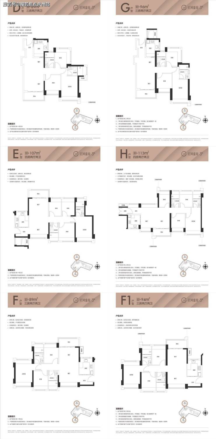 主要为建面约83-87-89-94-96㎡的3房2卫,以及107-113㎡的4房2卫,多样化的户型面积段满足市场的不同需求。