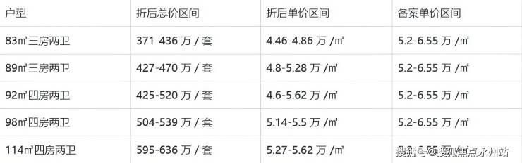 【3栋】尾盘延续前期87.6折政策,折后单价4.73万-5.59万/㎡,114㎡户型尾盘总价较新品低约7万。