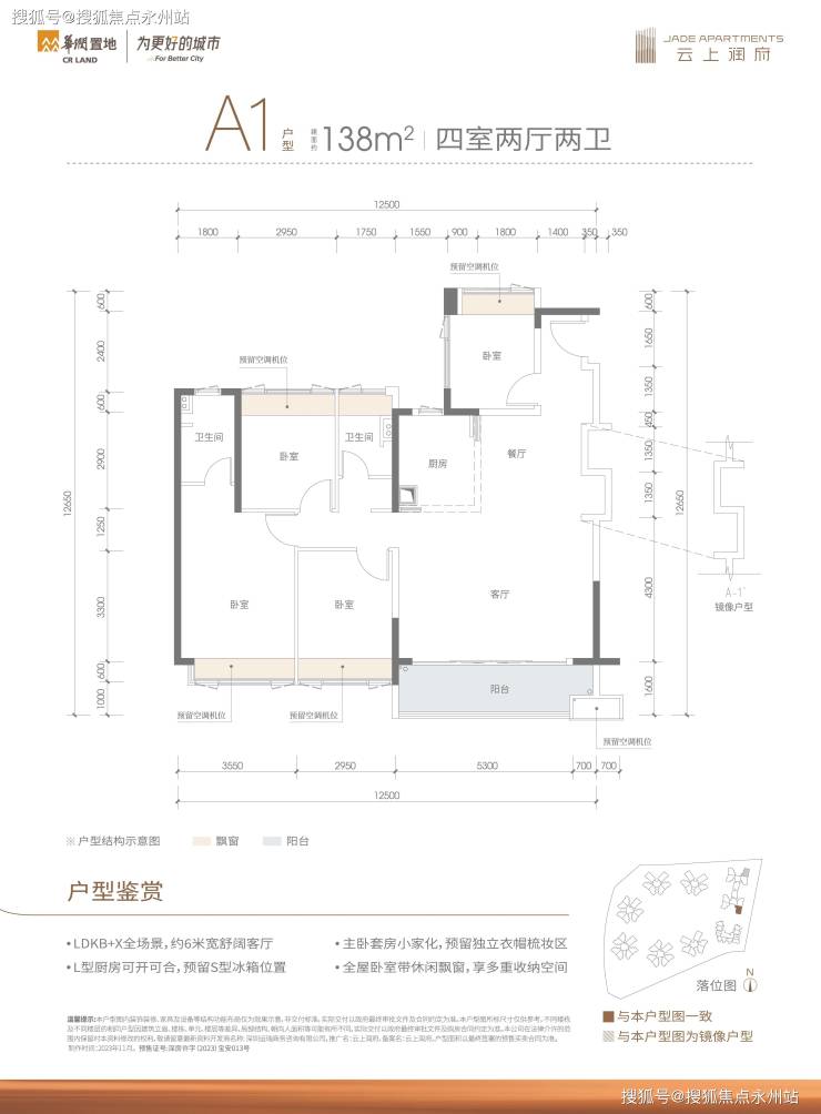 项目推售面积有98㎡的3房2卫,132㎡-135㎡-138㎡的4房2卫户型,备案均价4.74万/㎡,备案单价4.08-5.3万/㎡,总价407-707万/套,计划在2025年5月底前带精装交付(深圳华润云上润府售楼处电话:400-992-0669)
