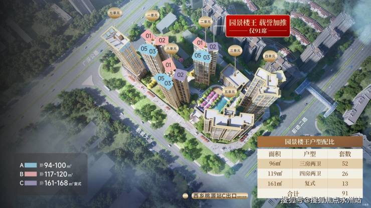 已开通的地铁12号线,西乡桃源站C出口距离项目仅约 50 米,真正实现了地铁上盖。