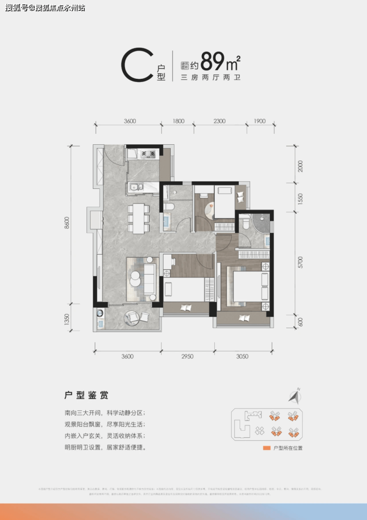 一共有490套:89㎡的三房两厅两卫,非常方正、紧凑的全明格局竖厅设计,厅出阳台、动静分明,对于预算相对有限的刚需来说,首套上车正合适。