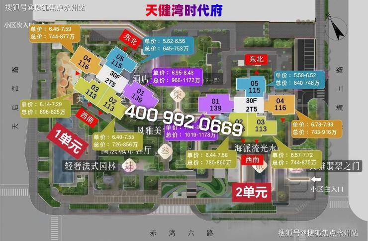 朝向与景观:西南向海景房源折后单价6.5-7.9万 /㎡,东北向房源5.44-6.8万/㎡,价差约15%-20%。