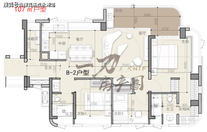107㎡户型大3房,肉眼可见的高拓展空间,据悉使用率可达97%,远超前海同类型的竞品。