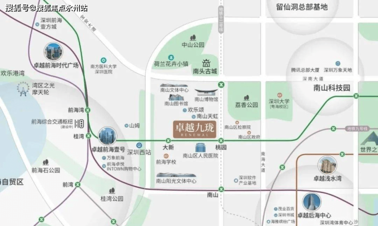 卓越·九珑项目位于南山核心区域,东边是科技园,西边是前海,南边是深圳湾后海总部基地,北边是西丽大学城。此地段,处于南山核心区域,聚集大体量的商务、商业空间,以及高密度的轨道交通规划地段好,周边的商业配套、教育医疗,都是很完善的。