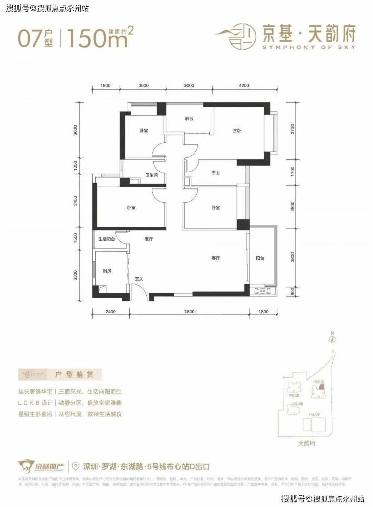 京基天韵府户型产品_房价介绍:京基天韵府在售面积有70-85㎡的2房1卫,105㎡的3房2卫,120-150-180㎡的4房2卫户型,计划在2024年一季度入市,将推出1栋B座,244套房源!价格方面预计6.6万/㎡均价。