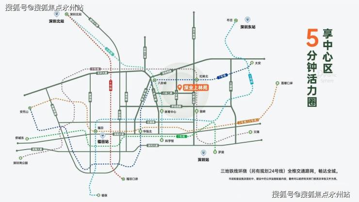20分钟内抵达城市枢纽:福田高铁站、深圳北站、深圳站、福田口岸、皇岗口岸,出行方便。