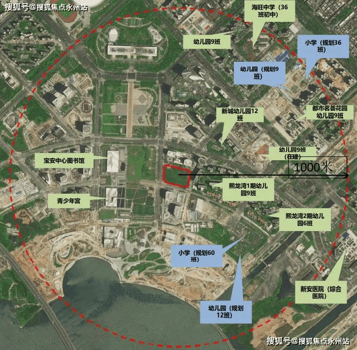项目所处的位置是宝中片区的核心位置,1.5公里范围布局着宝安区府、海滨广场、壹方城、宝体、欢乐港湾、图书馆、少年宫、湾区书城、工人文化宫、公共文化艺术中心、安中集团海天学校、南科大深圳医院等,这些都是宝中的顶级公共配套资源。