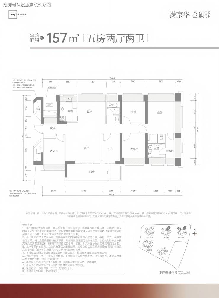 157㎡五房两卫(20套):总价686-713万,横厅设计,约 6.7 米景观阳台,主卧套房面积超27㎡。
