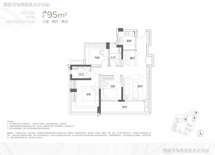 设计亮点:LDKB 一体化设计,6.3米跑道式阳台连通次卧,主卧及一次卧配备270°全景飘窗,东北向看山景或西南向看海,得房率约91.6%(含赠送)