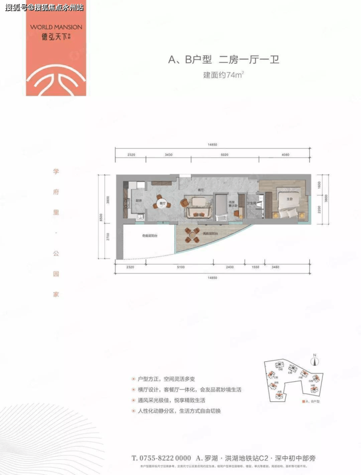 德弘天下华府 罗湖公园学府 全城臻藏 建面约70㎡品质住宅现楼 立体交通体系,双地铁口