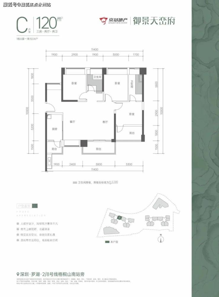 京基御景天峦府,位于深圳罗湖,本次开盘推出住宅,建筑面积约75-150㎡2-4房,赠送价值5000元/m²精装。