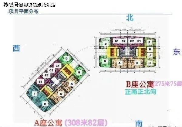 两座公寓最高层单位分别A座82层308 米、B座75层 275 米,是亚洲第一高纯公寓。