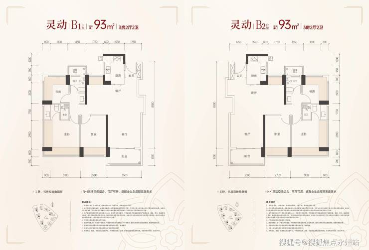 93㎡户型空间更舒展,部分采用横厅设计,采光通风更佳,适合首次改善家庭。