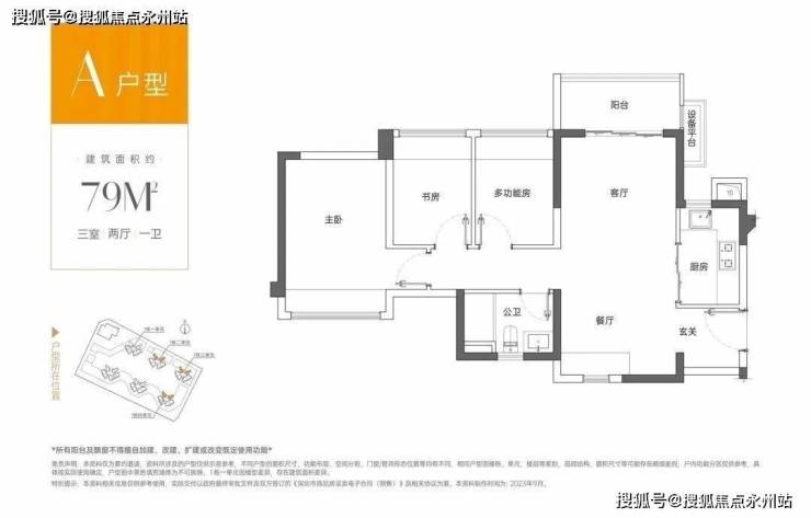 【建面约79㎡实用三房】独立冰箱凹槽,宽阔飘窗设计,空间极致化,独立入户玄关,私享归家仪式