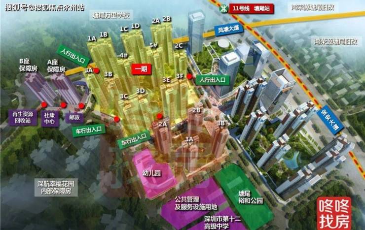 悦章凤凰里位于宝安大洋路与塘新路交汇处西侧,项目毗邻立新湖公园,距离地铁11号线 “桥头站” 的周围,用地类型为 教育用地+公共绿地+R2二类居住用地。