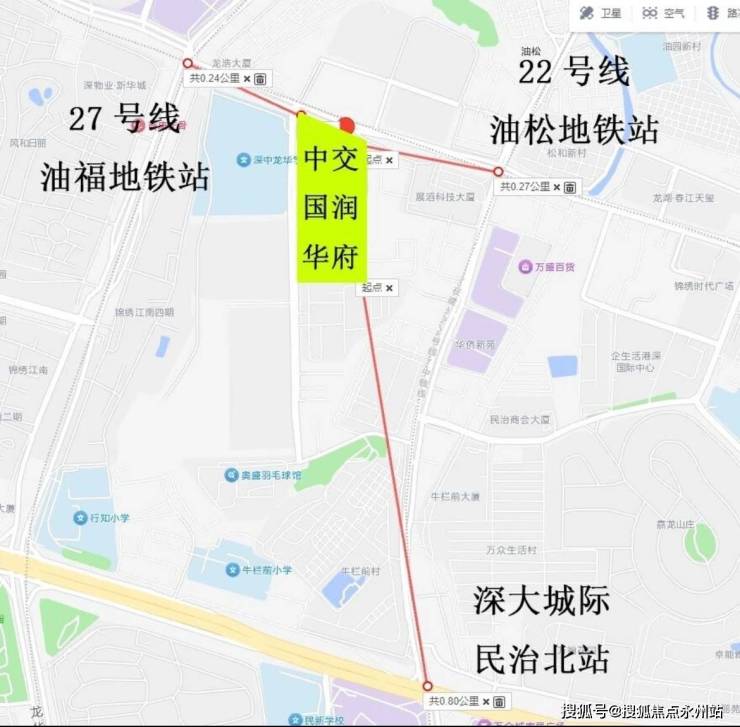 项目交通优势突出,呈现“双地铁+城际铁路”的立体布局。在建的地铁22号线油松站、规划中的地铁27号线油福站均位于项目200米范围内,未来步行即可直达;建设中的深大城际民治北站距离项目约800米,预计2026年投入使用,开通后龙华至深圳机场仅需20分钟,坪山至深圳机场最快40分钟,实现跨区域快速通勤。
