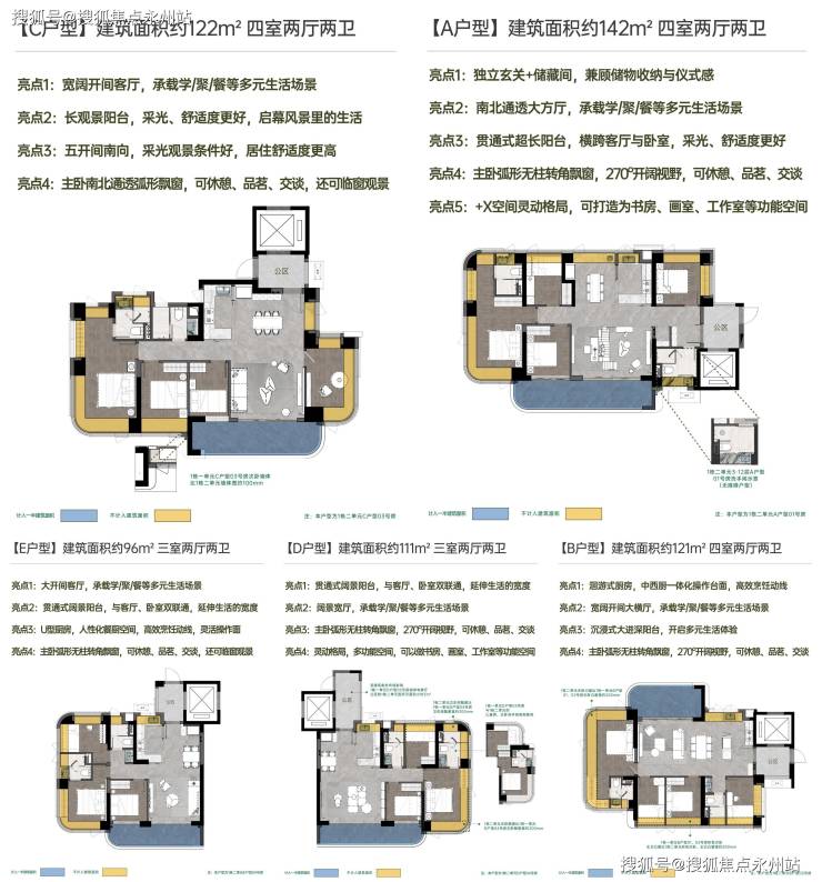 项目去年12月22日开盘卖了五成,推出319套96-108-111-121-122-142㎡3-4房改善产品。