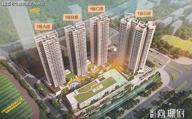项目包含一所幼儿园,三座商品住宅(A、B、C座) 和 一座人才房(D座)组成