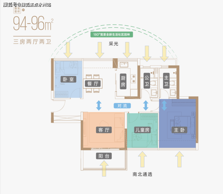 建筑面积约94-96㎡阳光三房:多开间朝阳让空间充满阳光,突破传统阳台进深标准,约1.7米进深景观阳台,拓宽采光及视野,将风景引入生活,为生活增添了鲜艳底色;