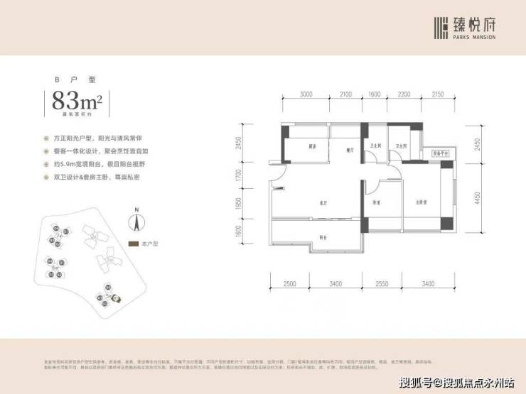 建面约83㎡ 3房2卫(刚需主力户型) 适配人群:三口之家刚需群体