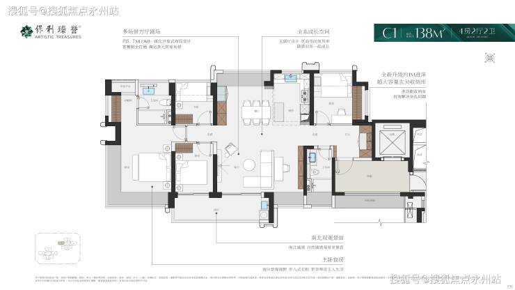 保利瑧誉府,项目为宝安首个「新规盘」,通过优化设计实现得房率显著提升。以123㎡四房为例,套内面积96.06㎡+赠送18.12㎡=实用面积114.18㎡,得房率约92.34%(不含私用公区);若计入专梯入户赠送的6-12㎡私用公区,实际使用率超100%,部分户型可达108%。主力户型采用纯南向板楼、四开间朝南、LDKB一体化设计,主卧配备270°无柱转角飘窗,兼顾空间感与景观资源。(深圳宝安保利瑧誉府售楼处电话:400-992-0669)
