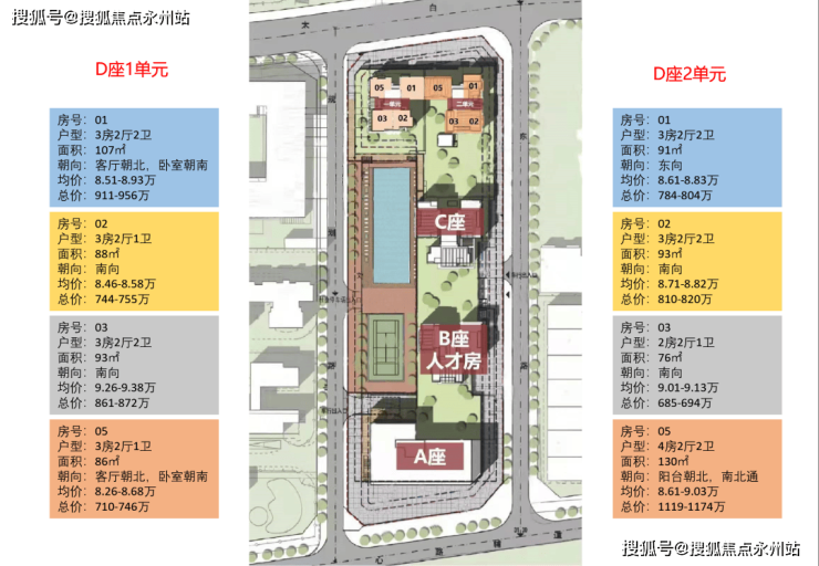 项目占地面积约1万㎡,规划总建筑面积约15.5万㎡,计容积率面积约10.2万㎡,不计算容积率面积车库、设备房约0.53万㎡。项目规划由ABCD四座建筑组成,整体呈C字形布局。其中A座为24层高的公寓/公共性质,B座为32层高的保障房,C座和D座为45层高的商品房住宅。小区内部规划有商业、文化活动室、体育场馆、架空中央花园等基础配套设施。