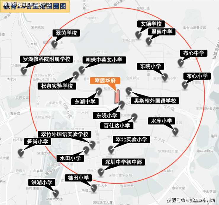 根据2020年罗湖区教育局公布的秋季招生学区划分,项目地块小学划分在松泉实验学校、水田小学、东昌小学、布心小学、东晓小学、华丽小学、陶金山小学、翠茵学校;初中划分在翠园中学东晓校区