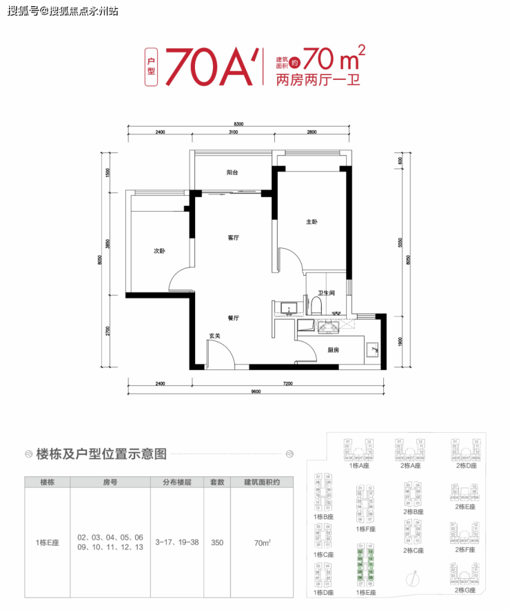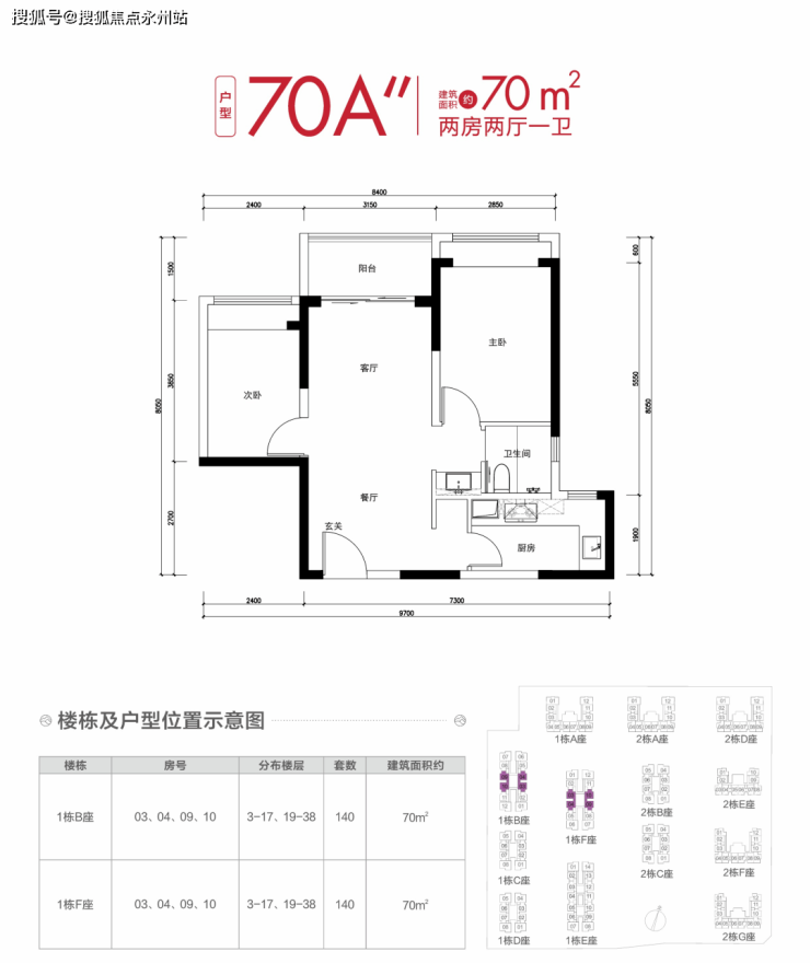 70㎡两房:2742 套,总价255万-316万,单价3.7万 /㎡起。主力户型为“双龙抱珠”设计(70A)和传统竖厅(70B),动静分区明确,卧室带飘窗,卫生间干湿分离。