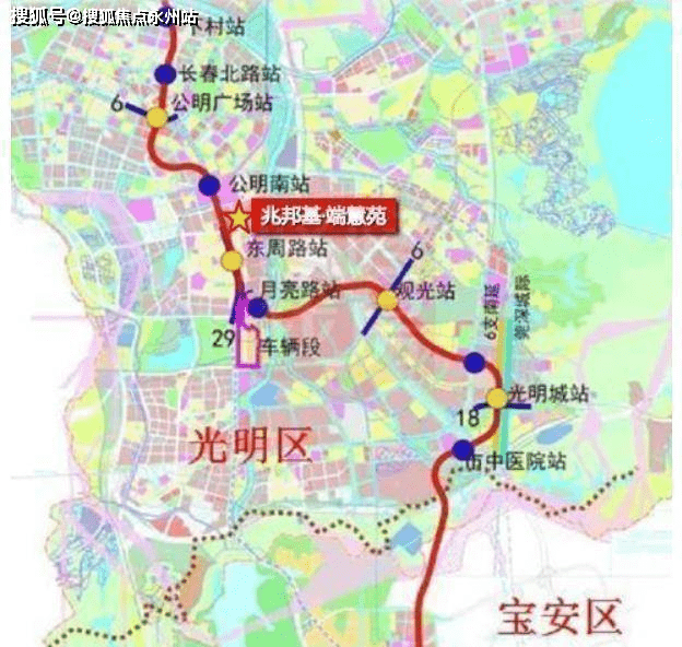 兆邦基·端慧苑位于深圳西部光明区松白路与周家大道交汇处东北侧,紧邻光明高级中学,在建13号线二期北延线地铁物业,距离“东周路站”地铁口约100米左右,本项目由深圳市沧然实业发展有限公司(兆邦基集团旗下)进行开发建设,总占地1.8万㎡,总建筑面积约10.4万㎡,容积率6.3。