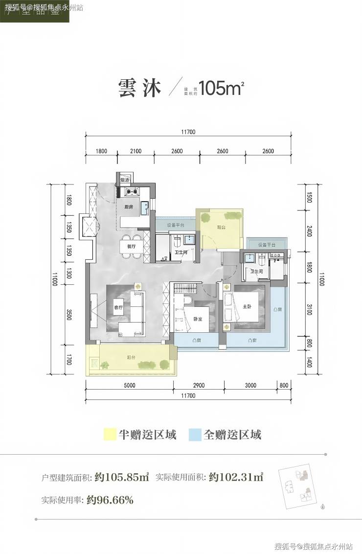 得房率:含赠送后得房率约95.47%,实际使用面积堪比传统115㎡户型。