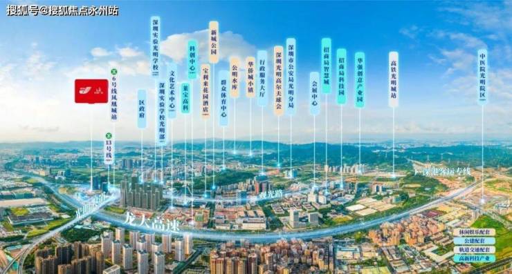 交通枢纽:项目无缝接驳凤凰城地铁站,6号线已于2020年8月份开通,13号线(建设中)连接深圳科创基地,毗邻龙大高速光明出口,光明城高铁站,
