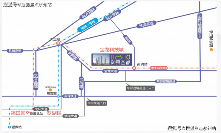 项目直连地铁14号线南约地铁口(规划中31号,23 号线),2站大运、9站福田中心,未来可享四地铁交汇利好;沈海高速和东部过境高速南北贯穿,直通罗湖,无缝连接福田、南山;坐享地铁、铁路交通、公交枢纽等多维交通体系,快速通达深圳中心城区、香港及周边城市,高效链接都会生活圈。