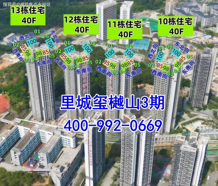 共由9栋总高32-40层高的住宅组成,其中二期5/6/7/8/9号楼总高32F,3期10/11/12/13号楼总高40F,15号楼是1所9班制幼儿园。