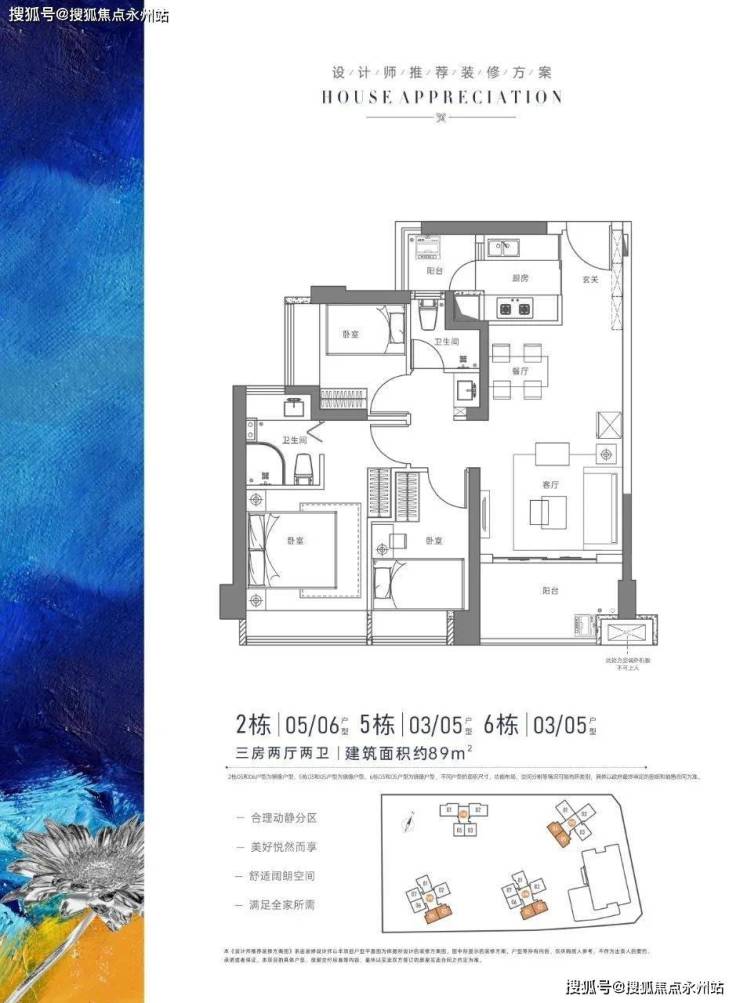 89平3房2卫,适合刚需,使用率极高,方方正正的,朝向分布东南、西南、东北。