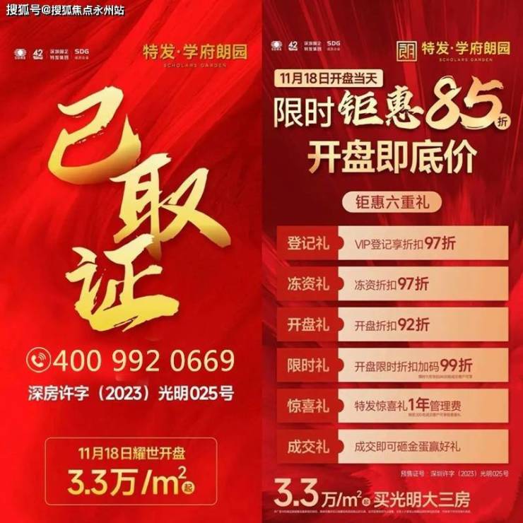 特发地产2023年礼献光明巨作,湾区水岸·百万超新城——特发·学府朗园已取证,开盘85折,后单价3.3万起!