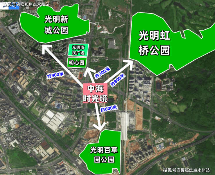 项目不仅位于凤凰城内,还据守着高铁新城片区,距离光明城站仅约300米。